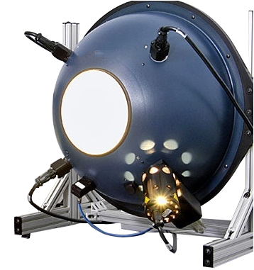 均勻光源系統(tǒng)的光源采用20秒爬升時(shí)間來增加使用壽命,相互匹配的燈泡色溫可以減少多個(gè)燈泡組合時(shí)產(chǎn)生的色溫變化,結(jié)實(shí)可靠的開口結(jié)構(gòu)使得待測(cè)樣品安裝簡(jiǎn)單且可重復(fù)。系統(tǒng)包含所有的電器設(shè)備,相關(guān)設(shè)備安裝在球的框架上以便于移動(dòng)。