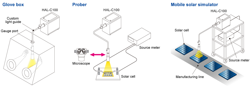 太陽光模擬器HAL-C100是配備氙氣100W燈的光源。 這是引入光伏研究的緊湊型機身入門型號。 我們獨特的光纖照明系統(tǒng)可以為任何方向照明。