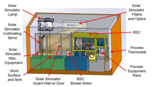 科學(xué)家與我們聯(lián)系,需要開發(fā)定制的太陽能模擬器,以實(shí)現(xiàn)政府的高度優(yōu)先研究計(jì)劃。他們對(duì)研究高層大氣中的空氣污染效應(yīng)和光化學(xué)具有獨(dú)特而特殊的光譜要求??蛻舻臉悠肥沂且粋€(gè)裝有懸浮氣溶膠的旋轉(zhuǎn)圓柱鼓,需要均勻和準(zhǔn)直的照明。但是,狹窄的實(shí)驗(yàn)室空間以及連接到樣品桶的其他設(shè)備的存在對(duì)Sciencetech提出的解決方案施加了多個(gè)限制。
