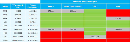 可以選擇不同的材料在不同的波長范圍內傳輸。 下表中列出了一些**常見的選項,以快速參考每種材料的**有用范圍。