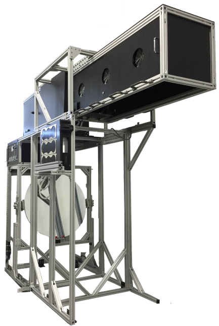 這套太陽模擬器能夠提供**接近太陽光散射角的超高準直光束(散射角全角僅0.7°), 在AM0光譜條件下可提供直徑40cm的圓形輻照面積。全自動的移動裝置能夠控制太陽模